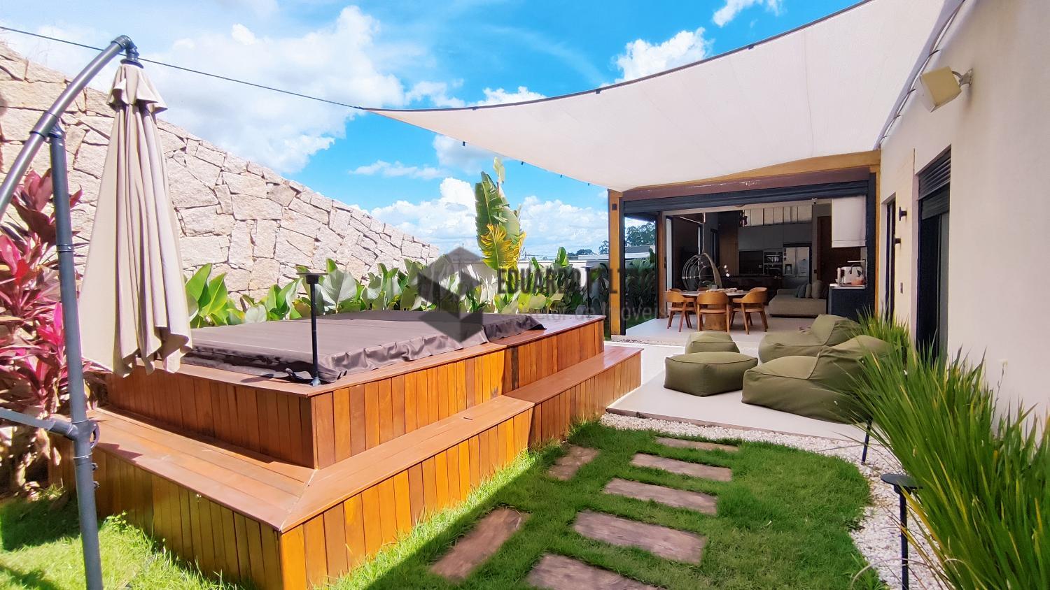 Casa térrea à venda no Condomínio Residencial Ecologie em Itatiba SP. Terreno de 400 m² 172 m² de construção. 3 dormitórios sendo 1 suíte com closet, pia e chuveiro duplo. Repleto de armários planejados. Lavabo, banheiro social. Toda automatizada. Pé direito alto. Conceito aberto. Área gourmet integrada a área externa. Spa/hidro para 7 pessoas com aquecimento. Sistema de aquecimento solar. Paisagismo, iluminação, irrigação automática.